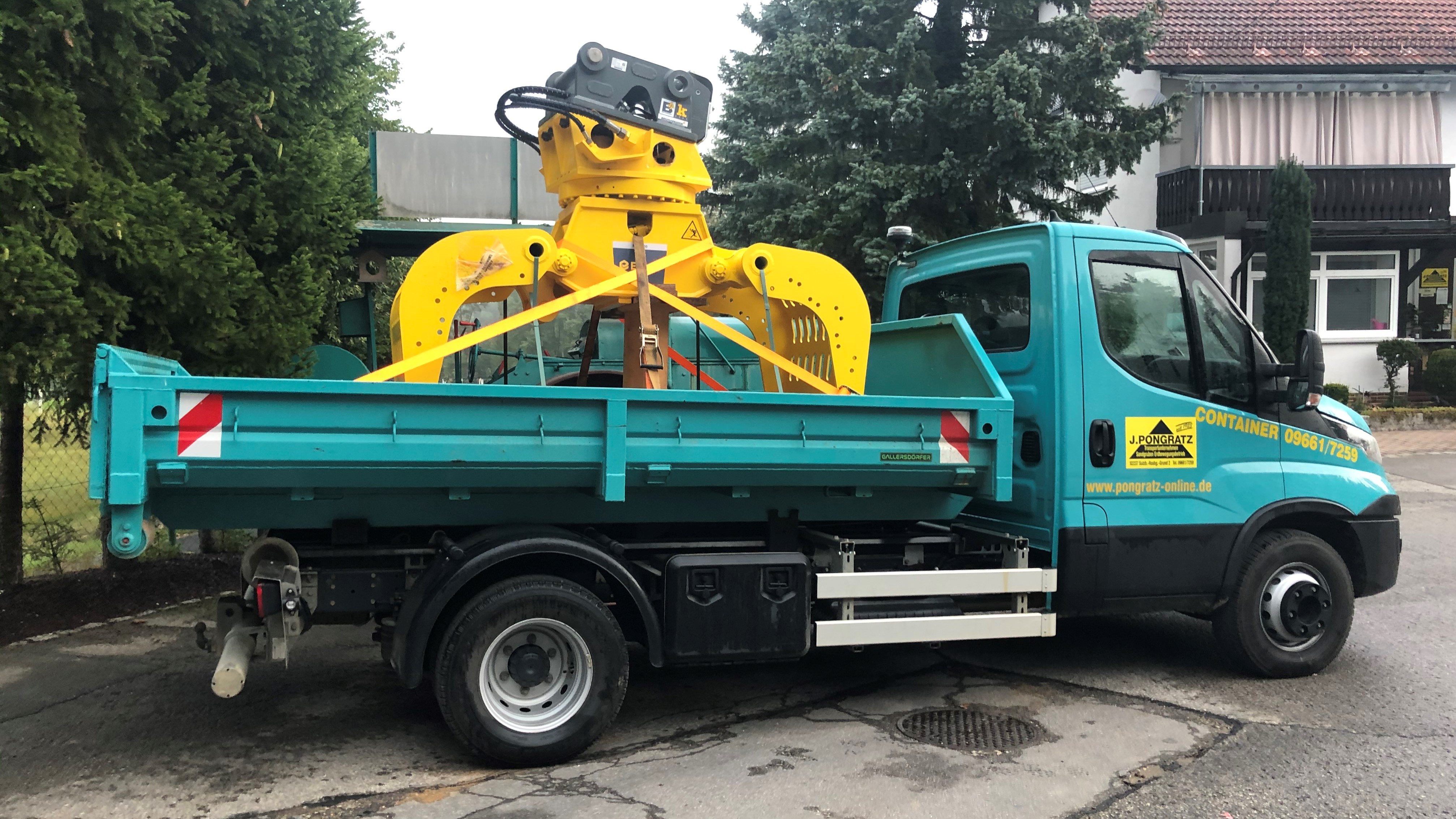 Mit dem 2-achsigen Abroller befördern wir außerdem Baustoffe, kleine Baumaschinen, Geräte, Werkzeuge und Schüttgüter selbst durch enge Gassen und Zufahrten.